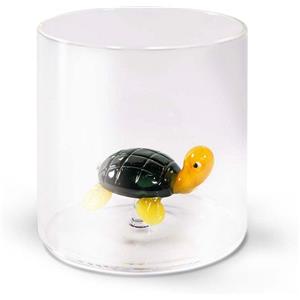 WD Lifestyle Bicchiere in Vetro Borosilicato 250 ml con Decoro Tartaruga - Artigianale e Lavabile in Lavastoviglie