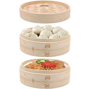 VIRSUS Vaporiera in Bambù 20 cm con Coperchio - Cottura a Vapore su 2 Piani per Verdure, Pesce e Ravioli