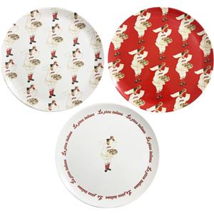 PALUPLUS Set 3 Piatti Pizza Rotondi in Melamina Infrangibili e Riutilizzabili, Diametro 33 cm, Altezza 1,5 cm con 3 Decorazioni Diverse