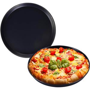 PALUPLUS Set di 2 Teglie Pizza Tonde in Lamiera Blu Ø 32 cm, Bordo Basso, Resistente fino a 250°C, Made in Italy