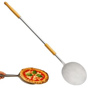 PALUPLUS Pala Pizza Rotonda 158 cm con Manico in Legno di Faggio e Palino in Acciaio Inox, Ideale per Forno a Legna o Gas