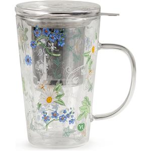 Neavita Infusiera Vetro con Fiori - Doppia Parete, Capacità 300ml, Filtro in Acciaio
