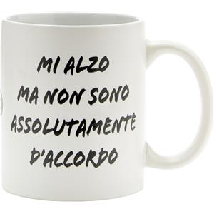 PIU FORTY Tazza Mug in Ceramica Bianca con Frase Divertente 'Mi Alzo Ma Non Sono Assolutamente D'Accordo'