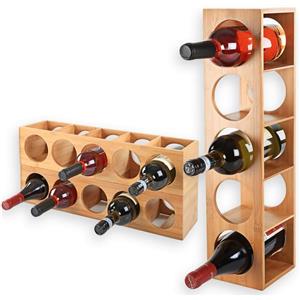 VIRSUS Cantinetta Vini in Bambù Componibile a 5 Scomparti - Scaffale Portabottiglie 14x14x53 cm con Montaggio a Parete