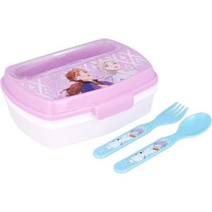 WALT DISNEY Sandwich Box Plastica Bimbi Frozen con Posate - Lavabile, Riutilizzabile e Senza BPA