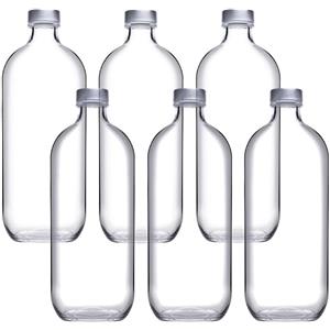 PASABAHCE Bottiglia Iconic in Vetro Trasparente da 1,1 Litri con Tappo a Vite - Set da 6 Pezzi, Lavabile in Lavastoviglie