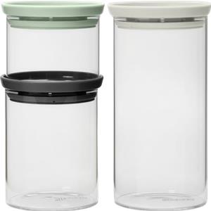 Brabantia Set di 3 Contenitori Impilabili per Cucina in Vetro e Plastica - Capacità 0.3L, 0.6L, 1.1L - Salvaspazio con Guarnizione in Silicone