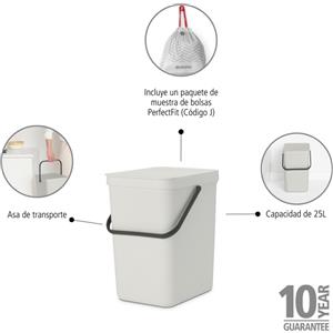 Brabantia Pattumiera Sort & Go 25L - Cestino Grande per Raccolta Differenziata - Grigio Chiaro - Coperchio Aperto, Maniglia e Fissaggio a Muro