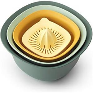 Brabantia Tasty Set di Ciotole Impilabili in Plastica con Base Antiscivolo, 1,5 e 3,2 Litri, Scolapasta e Spremiagrumi