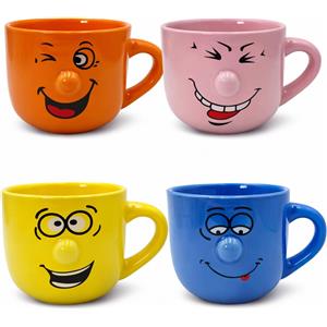 Paluplus Set di 4 Tazze da Colazione in Porcellana Multicolor con Faccine Divertenti - Capacità 450 ml, Lavabili in Lavastoviglie e Adatte per Microonde