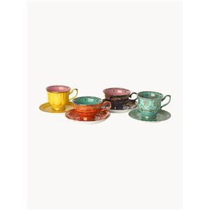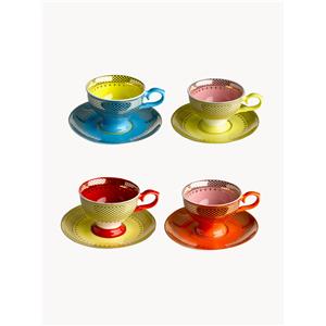 Pols Potten - Set di 4 tazze da tè multicolore con piattini in porcellana smaltata