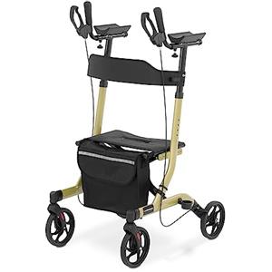 Uniprodo Deambulatore Rollator Champagne - Pieghevole, Leggero, 136 kg, Altezza Regolabile 1050-1150 mm, con Schienale e Sedile