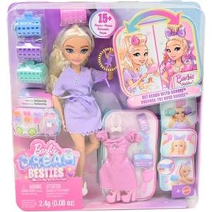 Barbie dream besties - barbie "malibu", bambola bionda alla moda con 11 accessori a tema capelli e make-up inclusi