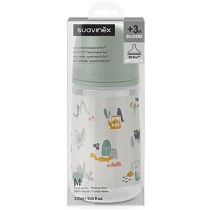 Suavinex Biberon 270ml Verde con Tettarella Simmetrica in Silicone SX Pro e Valvola Anticolica per Bambini 3 Mesi