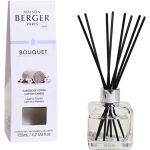 Maison Berger Paris Diffusore di Aromi Caresse de Coton 125 ml - Cubo in Vetro Trasparente con Bastoncini in Legno Neri in Profumatori e Candele