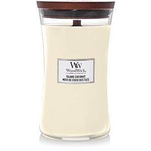 WoodWick Island Coconut - Candela Profumata Grande 610 g con Stoppino Scoppiettante, Fragranza di Cocco e Ananas, Durata Fino a 130 Ore