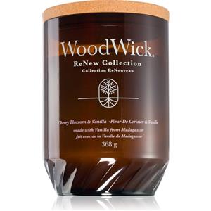 WoodWick ReNew Candela Profumata Cherry Blossom & Vanilla - 184 g, Cera di Cocco e Soia, Stoppino Scoppiettante, Realizzata con Materiali Riciclati