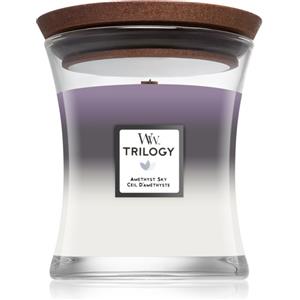 WoodWick Trilogy Candela Profumata Grande Amethyst Sky - 609,5 g, Stoppino Scoppiettante, Durata Fino a 130 Ore, Fragranze di Amethyst & Amber, Suede & Sandalwood, Smoked Jasmine