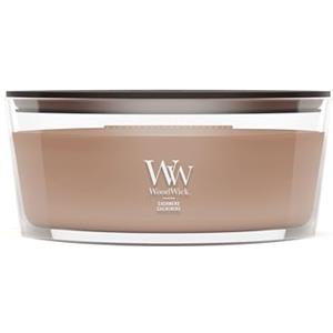 WoodWick Candela Profumata Ellisse Cashmere 453,6 g - Fragranza Legnosa con Legno di Sandalo, Fava Tonka e Mela Cotogna