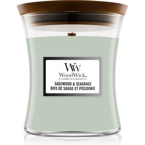 WoodWick Sagewood & Seagrass Medium Candela Profumata 275 g con Stoppino in Legno