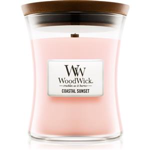WoodWick Candela Media Tramonto Costiero 275 g - Cera Profumata con Stoppino Scoppiettante, Fragranza di Cocco e Fiori, Durata 60 Ore