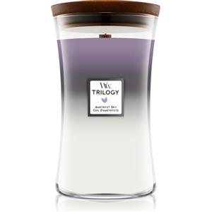WoodWick Trilogy Candela Profumata Grande Amethyst Sky - 609,5 g, Stoppino Scoppiettante, Durata Fino a 130 Ore, Fragranze di Amethyst & Amber, Suede & Sandalwood, Smoked Jasmine