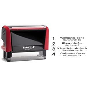 Trodat Printy 4913 - Timbro di Testo Rosso Fuoco con Tampone Nero, Design Sostenibile