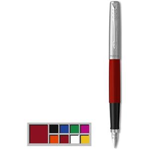 Parker Jotter Original Penna Stilografica, Fusto Rosso Lucido in Plastica, Pennino Medio, Inchiostro Blu e Nero, Due Cartucce Quink Incluse