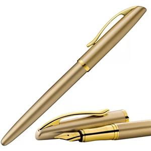 Pelikan Jazz Noble Elegance Penna Stilografica Gold - Inchiostro Blu, Clip Elastica, Design Slanciato, Pennino in Acciaio, Astuccio Regalo