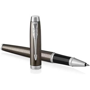 Parker IM Roller Dark Espresso - Punta Fine, Inchiostro Nero, Acciaio Inossidabile, Confezione Regalo