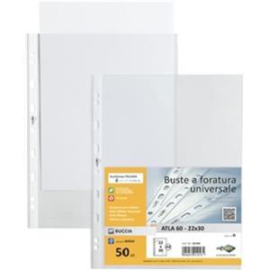 Sei Rota Buste in Polipropilene (PP) Atla 60 - Formato 22 x 30 cm, Basso Spessore, Foratura Universale Rinforzata, Confezione da 100 pezzi