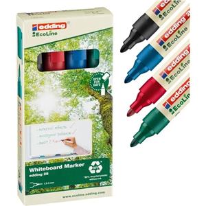 Edding 28 EcoLine Marcatore per Lavagne Bianche Punta Conica 1,5 - 3 mm Astuccio 4 Pezzi Inchiostro Pigmentato Inodore