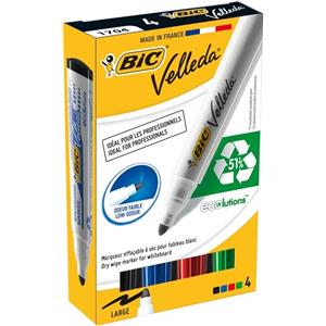 BIC Velleda 1701 Marker per Lavagne Bianche - Punta Tonda 1,5 mm - Astuccio da 4 Colori Assortiti (Nero, Blu, Rosso, Verde) - Eco-Friendly