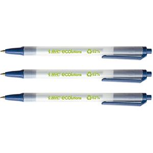 BIC ECOlutions Clic Stic Penna a sfera retrattile blu 1 mm - Fusto trasparente o bianco, 62-78% materiali riciclati, confezione da 50 pz