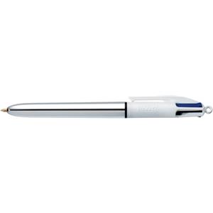 BIC 4 Colours Shine - Penna a sfera a scatto, fusto argento, 4 colori, tratto 1 mm