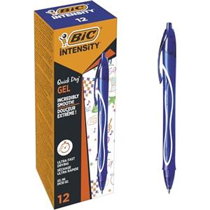 BIC Intensity Quick Dry Penne Gel Blu - Punta Media 0,7mm, Inchiostro Scorrevole e Asciugatura Ultra-Rapida, Conf. 12 Pezzi