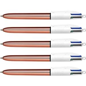 BIC Penna a sfera 4 Colours Shine Rose Gold - Fusto in plastica, tratto 0,32 mm, 4 colori assortiti