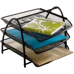 Alba Vaschetta Portacorrispondenza Mesh - 3 Ripiani - Rete Metallica - 34 x 29 x 24,5 cm - Nero