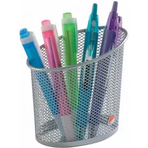 ALBA Portapenne Mesh Ellittico in Metallo Traforato Argento - Dimensioni 10,5x7,3x10,5 cm