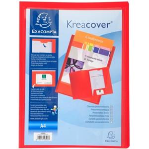 Exacompta Cartella di Presentazione Kreacover in Polipropilene (PP) Rosso A4 con 2 Alette e Busta Trasparente