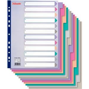 Esselte Separatore A4 Maxi 12 Tasti in Polipropilene Traslucido - 24,5x29,7 cm - Multicolore