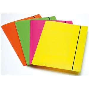 Fellowes Cartella 3 Lembi Shocking File A4 con Elastico - Assortita in Colori Fluorescenti - Conf. da 4 Pezzi