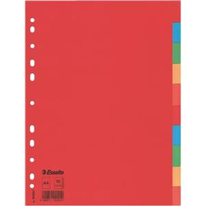 Esselte Separatore Economy - 10 Tasti in Cartoncino Riciclato 160 g/mq - A4 - Colori Assortiti - Certificazione Blue Angel
