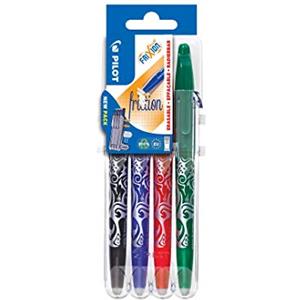 Pilot Frixion Ball Set di 4 Penne a Sfera Cancellabili 0,7 mm - Nero, Blu, Rosso, Verde con Portapenne Ecologico