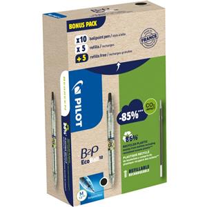 Pilot B2P Ecoball Penna a sfera retrattile a scatto nera punta 1.0 mm con 10 refill inclusi