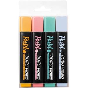 Tratto Video Pastel - Set di 4 evidenziatori a base acqua con punta a scalpello, colori pastello: limone, ciliegia, menta, cocco