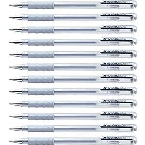 Pentel Gel Hybrid Grip Luna - Penna Roller 0.8 mm Bianco - Punta in Metallo, Design Trasparente, Ricaricabile, Conf. 12 pz