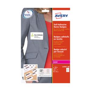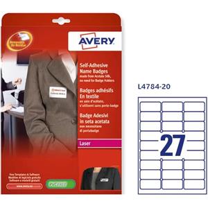 Avery L4784-20 Badge Adesivi in Seta Acetata Bianco 63,5 x 29,6 mm - 20 Fogli per Stampanti Laser