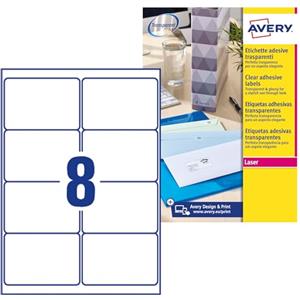 Avery L7551-25 Etichette Adesive Trasparenti Lucide - 38,1 x 21,2 mm, 65 Etichette per Foglio, 25 Fogli A4, Adesivo Permanente per Stampanti Laser