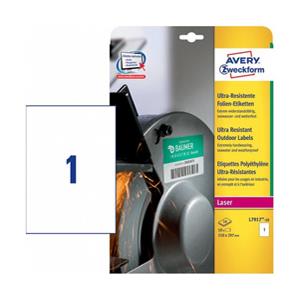 Avery Etichette Ultra Resistenti in Polietilene Bianco - 210x297 mm, 10 Fogli, Stampa Laser